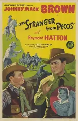 The Stranger from Pecos is a 1943 American Western film directed by Lambert Hillyer and written by Adele Buffington. This is the second film in the "Marshal Nevada Jack McKenzie" series, and stars Johnny Mack Brown as Jack McKenzie and Raymond Hatton as his sidekick Sandy Hopkins, with Kirby Grant, Christine McIntyre, Steve Clark and Edmund Cobb. The film was released on July 10, 1943, by Monogram Pictures.[1][2][3]