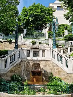 A plaque with Doderer's poem "Auf die Strudelhofstiege zu Wien" (lit. 'On the Strudlhof Steps in Vienna'), which opens the novel, has been placed at the Strudlhofstiege.[1]
