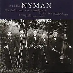 The Suit and the Photograph is a 1998 album by Michael Nyman with the Michael Nyman Band, recorded in 1995. On this album, Nyman is the composer, conductor, and producer, and wrote the liner notes.[1] The album contains two works, String Quartet No. 4 and 3 Quartets.[1] The album is named for its cover photograph by August Sander, which Nyman had associated with the Michael Nyman Band since its inception in 1977.[1] He cites a description of the photograph by John Berger, in an essay of the same title, describing that the suits deform the working class rural men just enough to "undermine physical dignity."[1] Both of the pieces on the album originated in Japan. It is Nyman's second release on EMI and his 33rd in general, but is not designated part of a series, as EMI had done with Concertos. Said Nyman of EMI, "I didn't excite them, and they didn't excite me."[2] Nyman's only further releases on EMI would be the UK edition of Ravenous, featuring remixes by William Orbit, and The Actors, both film scores.