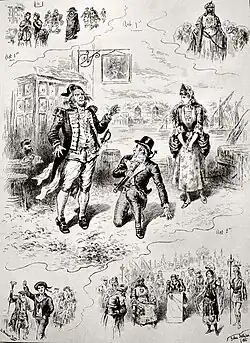 It received its American premiere in December 1878 at the Bush Street Theater in San Francisco, California, where it had a short run under the management of Alice Oates.[3] Blanche Roosevelt produced it at the Union Square Theatre in New York with her Blanche Roosevelt English Opera Company from 14 to 25 September 1880 for a run of 13 performances with Leonora Braham as Dolly and with Cellier conducting.[6] The work returned to Manchester in 1880, where it played at the Theatre Royal with Alice May as Dolly, Fred. J. Stimson as Flint, George Fox as the Sultan, Allen Thomas as Sneak and Frederic Wood as Peter.[7]