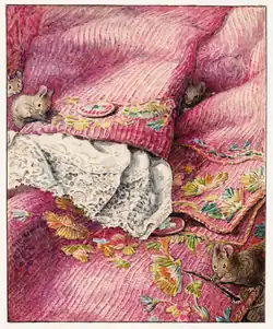 The Tailor of Gloucester is a Christmas children's book written and illustrated by Beatrix Potter, privately printed by the author in 1902, and published in a trade edition by Frederick Warne & Co. in October 1903. The story is about a tailor whose work on a waistcoat is finished by the grateful mice he rescues from his cat and was based on a real world incident involving a tailor and his assistants. For years, Potter declared that of all her books it was her personal favourite.[1]