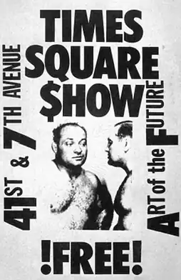 The Times Square Show was an influential collaborative, self-curated, and self-generated art exhibition held by New York artists' group Colab (aka Collaborative Projects, Inc) in Times Square in a shuttered massage parlor at 201 W. 41st and 7th Avenue during the entire month of June in 1980.[1][2] The Times Square Show was largely inspired by the more radical Colab show The Real Estate Show (that occurred in January 1980), but unlike it, was open 24 hours a day, 7 days a week, in what was then a Times Square full of porno theaters, peep shows, and red light establishments.[3] In addition to experimental painting and sculpture, the exhibition incorporated music, fashion, and an ambitious program of performance and video. For many artists the exhibition served as a forum for the exchange of ideas, a testing-ground for social-directed figurative work in progress, and a catalyst for exploring new political-artistic directions.