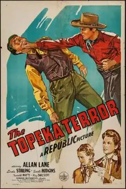 The Topeka Terror is a 1945 American Western film directed by Howard Bretherton, written by Patricia Harper and Norman S. Hall, and starring Allan Lane, Linda Stirling, Earle Hodgins, Twinkle Watts, Roy Barcroft and Bud Geary.[1][2][3] It was released on January 26, 1945, by Republic Pictures.