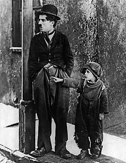 ![]() Charlie Chaplin in costume as his signature character the Tramp | |