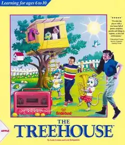 The Treehouse is a point-and-click educational video game for MS-DOS and then ported to Mac and the FM Towns, with Windows versions arriving later. Following the success of The Playroom, Broderbund created The Treehouse, which provides more content and furthers the user's ability to explore.[3] First released in 1991, most copies were sold in educational supply stores rather than mainstream stores that sold computer software; it included a sing-along cassette tape.[4] It was re-released in 1996 for Windows 3.1 and Windows 95. Although the Windows version has the same general activities, the characters, interface, and locations are different.