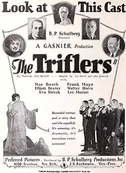 The Triflers is a 1924 American silent society drama film directed by Louis Gasnier and starring Mae Busch. It was produced by B. P. Schulberg and distributed by Preferred Pictures and Al Lichtman.[1]