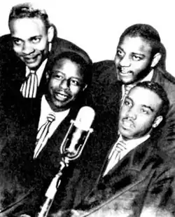 The Trumpeteers (also known as the CBS Trumpeteers) were an American gospel group formed in Baltimore, Maryland. They evolved from another gospel group known as the Willing Four. Joseph E. Johnson (lead vocals), an alumnus of the Willing Four and the Golden Gate Quartet, put them together with James Keels (bass), Raleigh Turnage (tenor) and Willie MacNair (baritone) in 1946.[1][2] Like similar gospel groups, the quartet adopted the Golden Gate Quartet's jubilee style, and began broadcasting jingles and promotions on WCAO radio in Baltimore for a sponsoring shoe company. Not long after, they were offered a regular broadcast spot by CBS Radio to replace the recently departed Jubalaires.[3]