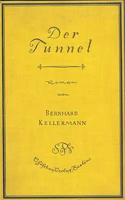 The Tunnel (German: Der Tunnel) is a novel by Bernhard Kellermann published in April 1913. The novel sold 100,000 copies in the six months after its publication, and it became one of the most successful books of the first half of the 20th century. By 1939 its circulation had reached millions. The main theme of the novel is social progress, particularly with respect to modern technology. It was published in English in 1915 through Hodder and Stoughton in the United Kingdom and Macaulay and Co. in the United States.[1]