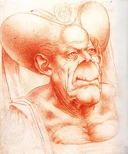 Grotesque Head, Leonardo da Vinci. Red chalk on paper, 17.2 × 14.3 cm -