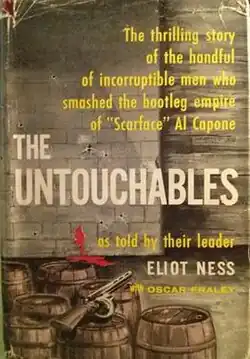 The Untouchables is an autobiographical memoir by Eliot Ness co-written with Oscar Fraley, published in 1957.[1] The book deals with the experiences of Ness, who was a federal agent in the Bureau of Prohibition, as he fought crime in Chicago in the late 1920s and early 1930s with the help of a special team of agents handpicked for their incorruptibility, nicknamed The Untouchables.[2]
