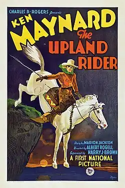 The Upland Rider is a 1928 American silent Western film directed by Albert S. Rogell and written by Ford Beebe. The film stars Ken Maynard, Ena Gregory, Lafe McKee, Sydney Jarvis, Robert D. Walker, and Bobby Dunn. The film was released on June 3, 1928, by First National Pictures.[1][2][3]