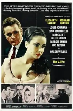 The V.I.P.s (also known as Hotel International) is a 1963 British comedy-drama film in Metrocolor and Panavision. It was directed by Anthony Asquith, produced by Anatole de Grunwald, and distributed by Metro-Goldwyn-Mayer.[4] The film was written by Terence Rattigan, with a music score by Miklós Rózsa.