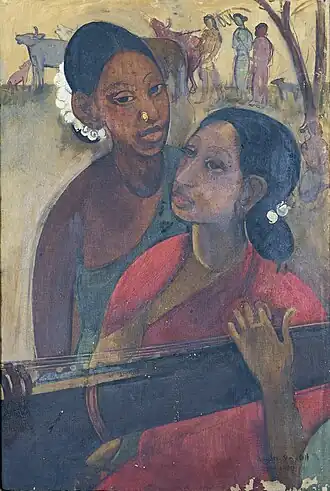 The Vina Player (1937) is an oil on canvas painting by Hungarian-Indian artist Amrita Sher-Gil. It was number five of her 33 paintings displayed at her solo exhibition in the ballroom at Faletti's Hotel in Lahore, British India, held from 21 to 27 November 1937. Sher-Gil's mother's favourite, it was initially not for sale, but then acquired by the Lahore Museum, through the encouragement of art critic Charles Fabri and the then museum's curator K. N. Sitaram.[1][2]