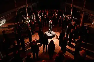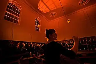 The Observatory was a site-responsive piece presented as part of the Norfolk & Norwich Festival and created as part of a partnership with the Sainsbury Centre for Visual Arts (SCVA) and the University of East Anglia (UEA).[11] The piece was an exploration of humankind's relationship with space - and our gradual attempts to understand and explore it with the poetic, the scientific and the musical. Weightlessness, distance, fear of the unknown, infinity and astronomical geometry inspired this piece which was staged in and around the SCVA. The SCVA provided a futuristic background for this piece which informed the design of the show – and also the opportunity for the audience to experience this iconic building quite differently.