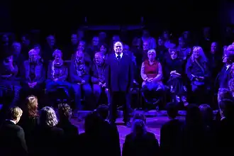 Jon Baker is a singer, teacher and composer who has written extensively for TV, radio and theatre. He is a founder-member of The Neutrinos with whom he has toured throughout Europe and North America. He is a co-founder of The Voice Project and also a co-founder of KlangHaus.[5]