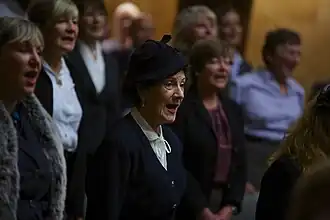 Siân Croose is a singer, conductor and performance maker with over 30 years' experience creating and directing music projects in the UK. After an apprenticeship in bands and alternative theatre, she trained on the Community Music programme founded by John Stevens. She has run choirs, vocal ensembles, and workshops for singers since 1990, and performed with composer Helen Chadwick and a cappella ensemble Human Music in a wide range of UK festivals and performance projects. Composition projects include Harmonium, a wordless systems-based a cappella project for women's voices and The Dawn Chorus with American composer Brendan Taaffe. She runs Norwich-based choir Big Sky, regularly commissioning new music from award-winning songwriter Chris Wood and others, and performing with storyteller Hugh Lupton and multi-instrumentalist Adrian Lever.[5]