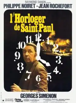 The Clockmaker (French: L'Horloger de Saint-Paul, also known as The Clockmaker of St. Paul and The Watchmaker of St. Paul) is a 1974 French crime drama film directed by Bertrand Tavernier, his feature film debut. Based on the 1954 novel L'Horloger d'Everton by Georges Simenon, it tells the story of a widowed father who first discovers how little he knows about his teenage son, who kills a man and with his girl goes on the run, but then decides that whatever their faults he will stand by the pair.