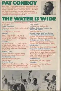 The Water Is Wide is a 1972 memoir[1] by Pat Conroy and is based on his work as a teacher on Daufuskie Island, South Carolina, which is called Yamacraw Island in the book. The book sometimes is identified as nonfiction[2] and other times identified as a novel.[3]