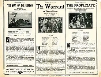 - ^ "The Way of the Eskimo (Selig)", The Billboard (Cincinnati, Ohio), July 29, 1911, p. 16. Internet Archive. Retrieved May 18, 2020.