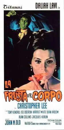 The Whip and the Body (Italian: La frusta e il corpo) is a 1963 gothic horror film directed by Mario Bava under the alias "John M. Old". The film is about Kurt Menliff (Christopher Lee) who is ostracized by his father for his relationship with a servant girl and her eventual suicide. He later returns to reclaim his title and his former fiancée Nevenka (Daliah Lavi) who is now his brother's wife. Menliff is later found murdered, but the locals believe his ghost has returned to haunt the castle for revenge.