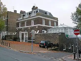 The Wick is a Grade I listed Georgian house[1] in Richmond, Greater London, located at the corner of Nightingale Lane and Richmond Hill. The house, designed in 1775 by architect Robert Mylne for Lady St. Aubyn, was for many years the family home of actor Sir John Mills,[2] who sold it to Ronnie Wood of the rock band Faces (and later of the Rolling Stones) in 1971. From 1996 it was owned by Pete Townshend of the Who, who sold it in 2021[3] for £15,000,000.[4]
