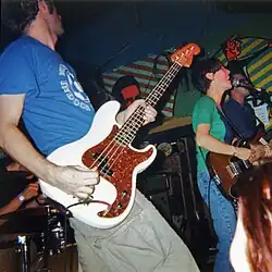 ![]() The Wicked Farleys performing live around 1999–2000. From left to right: Ken Bernard (obscured), Michael Cory, Vanessa Downing, Michael Brodeur | |