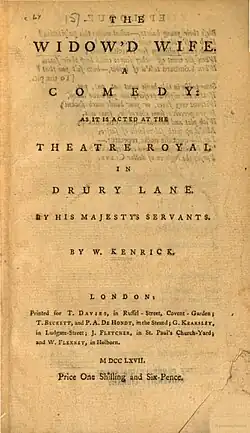 The Widowed Wife is a 1767 comedy play by William Kenrick. It premiered at Drury Lane Theatre on 5 December 1767. It closely resembled the plot of Memoirs of a Magdalen a novel by Hugh Kelly.[1] The play enjoyed a fairly successful run.