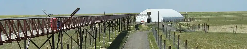 In the summer of 2016 a new 48,000 square foot welcome center was opened and an additional 1/2-mile of elevated walkway was added.[14] On October 31, 2016, Guinness World Records certified that the Wild Animal Sanctuary's elevated walkway was the world's longest footbridge at 7,974 feet (2,430 m), supplanting the Poughkeepsie Railroad Bridge.[15]