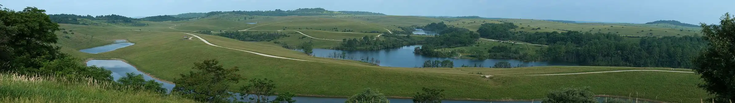 The property encompasses 9,154 acres (3,704 hectares) of reclaimed coal mine land and includes 2,000 acres (810 ha) of pastures and a 27-acre (11 ha) Carnivore Conservation Center. The Wilds is designated an Audubon Important Bird Area so the property includes a birding station with covered lookout as well as a butterfly habitat with hiking trails, more than 15 miles (24 km) of mountain bike and hiking trails and approximately 150 lakes.