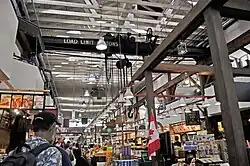 The market of the title was modelled on that of Granville Island, though in a state of bohemian decay.[1] As the author commented in a 2007 blog post: "Vancouver's Granville Island, centered around Granville Island Market (produce and food fair) is a very successful (and pleasant) retrofit of an under-bridge urban island that previously was heavily industrial. When the story was written, the retrofit was recent, and I dirtied it up for requisite punky near-future effect."[3]
