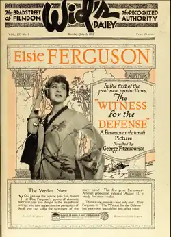 ![]() Ad for the film on the cover of a 1919 issue of Wid's Daily | |