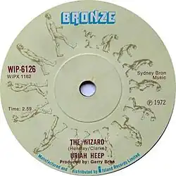 "The Wizard" is a song by British rock band Uriah Heep, from their 1972 album Demons and Wizards. It was the first single to be lifted from the album. It was composed by Mark Clarke and Ken Hensley.[2] It is a gentle, semi-acoustic ballad whose lyrics deal with a wanderer meeting "the Wizard of a thousand kings". This song is the first Uriah Heep single which had a music video.