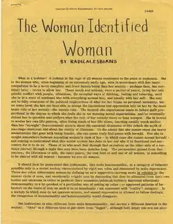- "The Woman-Identified Woman" (1970). From Documents from the Women's Liberation Movement, Special Collections Library, Duke University.