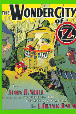 The Wonder City of Oz (1940) is the thirty-fourth book in the Oz series created by L. Frank Baum and his successors, and the first written and illustrated solely by John R. Neill[1] Neill introduced a modern-day reimagining change in tone that continued through his subsequent books, according to David L. Greene and Dick Martin of The Oz Scrapbook; "(His Oz entries) ...are highly imaginative, but the imagination is undisciplined; each book, in fact, has enough ideas to fill several."[2] In Neill's interpretation; Emerald City has skyscrapers and gas stations. Normally inanimate objects act alive: houses talk and fight, shoes sing (they have tongues), and clocks run. The book was followed by Neill's The Scalawagons of Oz (1941).
