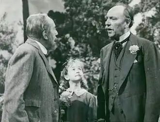 Scene from "Lord Emsworth and the Girl Friend", with McAllister (Radcliffe), Gladys (Jones), and Lord Emsworth (Richardson)