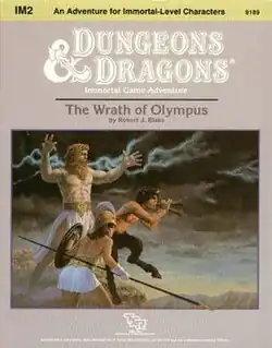 The Wrath of Olympus is an adventure scenario using the Dungeons & Dragons Immortals Set, in which the player characters save Immortals held captive by the demons of entropy.[1]