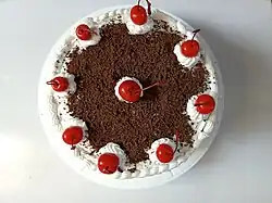 The cake element, along with additional messages given to the player in the behind-the-scenes areas, were written and drawn by Kim Swift.[8] The cake is a Black Forest gateau, with its design based on a cake from the Redmond location of the Regent Bakery and Cafe near Valve's offices.[9]