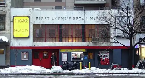 TNC's permanent home is the former First Avenue Retail Market created in 1938 by Fiorello LaGuardia to take pushcart peddlers off the streets. TNC purchased the building in 1986, but to its later regret, was not able to purchase the air rights above the one-story facility. After moving into the space in September 1986. it created two interim theaters to continue production while raising the $2 million needed for renovation funds. The building currently consists of four theaters: