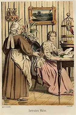 Prussian ideals pervade her entire work and educated several generations of children and young people. Her best-known work is certainly her Daughter Album, which appeared annually as a periodical from 1855 with the subtitle: Conversations in domestic circles for the education of the mind and spirit of growing female youth. From 1856 another periodical Herzblästles pastime followed. Entertainment for little boys and girls to develop hearts and concepts.