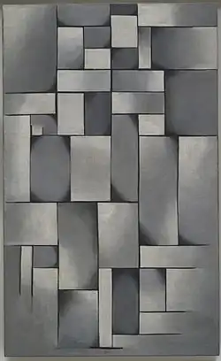 Van Doesburg's work has had significant influence, including that dealing with issues of crossover art, design and architecture. For example, his Space-time construction #3 (1923) was a key work in the Miller Company Collection of Abstract Art's Painting toward architecture exhibition (1947–52, 28 venues).[14] From that time, the work was influential to the practice of noted architect Harry Seidler. In 1992, he acquired the artwork, which was donated to the National Gallery of Australia in Canberra in 2010.[15] In a travelling, international exhibition on Seidler's work, Van Doesburg's Space time-construction #3 was shown as a key influence.[16]