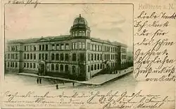 The Theodor-Heuss-Gymnasium Heilbronn is a Gymnasium in the city of Heilbronn. The roots of school date from a Lateinschule (Latin school) of the 15th century. In 1620, the school was converted into a Gymnasium. From 1827 to 1938, it was named the Karlsgymnasium. In 1880 the school moved into a new building that had been built in 1878 on the Karlstraße, where the current school is located. In 1938 the Karlsgymnasium was temporarily merged with a boys' middle school and renamed the Karlsoberschule. During World War II, an Allied air raid on December 4, 1944, destroyed the school building, which was then used as a hospital for wounded people. All teaching aids and most of the historical library that was not outsourced were consumed by the flames. Since 1950, it has been named after its most famous pupil, Theodor Heuss, the first President of the Federal Republic of Germany. Today's school building, built between 1956 and 1958, is a listed cultural monument.