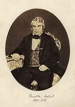 Theodor Sigismund Panofka (25 February 1800, Breslau – 20 June 1858, Berlin) was a German archaeologist, art historian, and philologist. He was one of the first scholars to make a systematic study of the pottery of Ancient Greece, and one of the founders of the institution later to become the German Archaeological Institute (Deutsches archäologisches Institut).