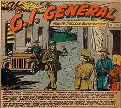 Bachenheimer was featured in the Real Life comics issue n°25, published 1 September 1945, as the character of the G.I. General.