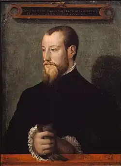 From Paris, Theodore was sent to Orléans in December 1528 to receive instruction from the German humanist Melchior Wolmar.[2] He was received into Wolmar's house, and the day on which this took place was afterward celebrated as a second birthday.[2] Beza soon followed his teacher to Bourges, where the latter was called by Duchess Margaret of Angoulême, sister of King Francis I.[2] At the time, Bourges was the focus of the Reformation movement in France.[2] In 1534, after Francis I issued his edict against ecclesiastical innovations, Wolmar returned to Germany.[2] Beza, in accordance with the wish of his father, went back to Orléans and studied law from 1535 to 1539.[2] The pursuit of law had little attraction for him; he enjoyed more the reading of the ancient classics, especially Ovid, Catullus, and Tibullus.[2]
