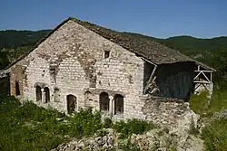 In his volume Moschopolis, first published posthumously in 1975 in Athens, Georgiadis makes brief descriptions of the 22 churches and chapels of Moscopole, from which only 5 survive today. He includes information such as donors' inscriptions of each church, the church registers as well as descriptions of the architectural style and the decoration of each building.[3] For instance, about the Church of the Archangels Michael and Gabriel he mentions that it had two chapels dedicated to Saint Spiridon and Saint Nahum, which are in ruins now.[4] In the Church of the Holy Virgin, notes that a scene of the Apocalypse was depicted in the porch which is now almost completely destroyed.[5] Georgiadis gave also details about several churches that are completely destroyed, such as Saint Euthimios.[6]