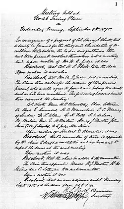- ^ See photographic reproduction of the notes to the meeting proposing the formation of the Theosophical Society, New York City, September 8, in the image from Wikimedia Commons.