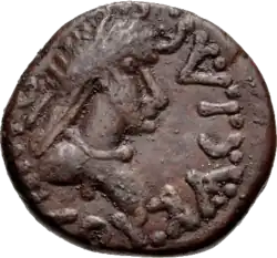 Coins minted by Theothorses are known from 286/287 to the end of his reign.[1] Some of Theothorses's early coins had surfaces of silver but a lack of available materials led to the coinage to degrade over the course of his reign; shortly after his accession, Theothorses went over to only minting bronze coins.[8] Coins from the last five years of his reign are considerably rarer than during preceding times, which could suggest either conflict within the kingdom or conflict with the Roman Empire, perhaps resulting from his possible non-dynastic rise to the throne or from conflict between pro-Roman and anti-Roman parties in the kingdom.[1]