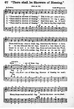 There shall be showers of blessings is a Christian hymn which was written in 1883 by Daniel Webster (1840–1901) under the pseudonym of D. W. Whittle.[1] It was given music by James McGranahan.[2][3]