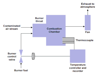 Also called afterburners in the cases where the input gases come from a process where combustion is incomplete,[1] these systems are the least capital intensive, and can be integrated with downstream boilers and heat exchangers to optimize fuel efficiency. Thermal Oxidizers are best applied where there is a very high concentration of VOCs to act as the fuel source (instead of natural gas or oil) for complete combustion at the targeted operating temperature.