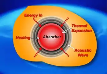 Sound, which propagates as a pressure wave, can be induced in virtually any material, including biologic tissue, whenever time-varying electromagnetic energy is absorbed. The stimulating radiation that induces these thermally generated acoustic waves may lie anywhere in the electromagnetic spectrum, from high-energy ionizing particles to low-energy radio waves. The term "photoacoustic" (see photoacoustic imaging in biomedicine) applies to this phenomenon when the stimulating radiation is optical, while "thermoacoustic" is the more general term and refers to all radiating sources, including optical.
